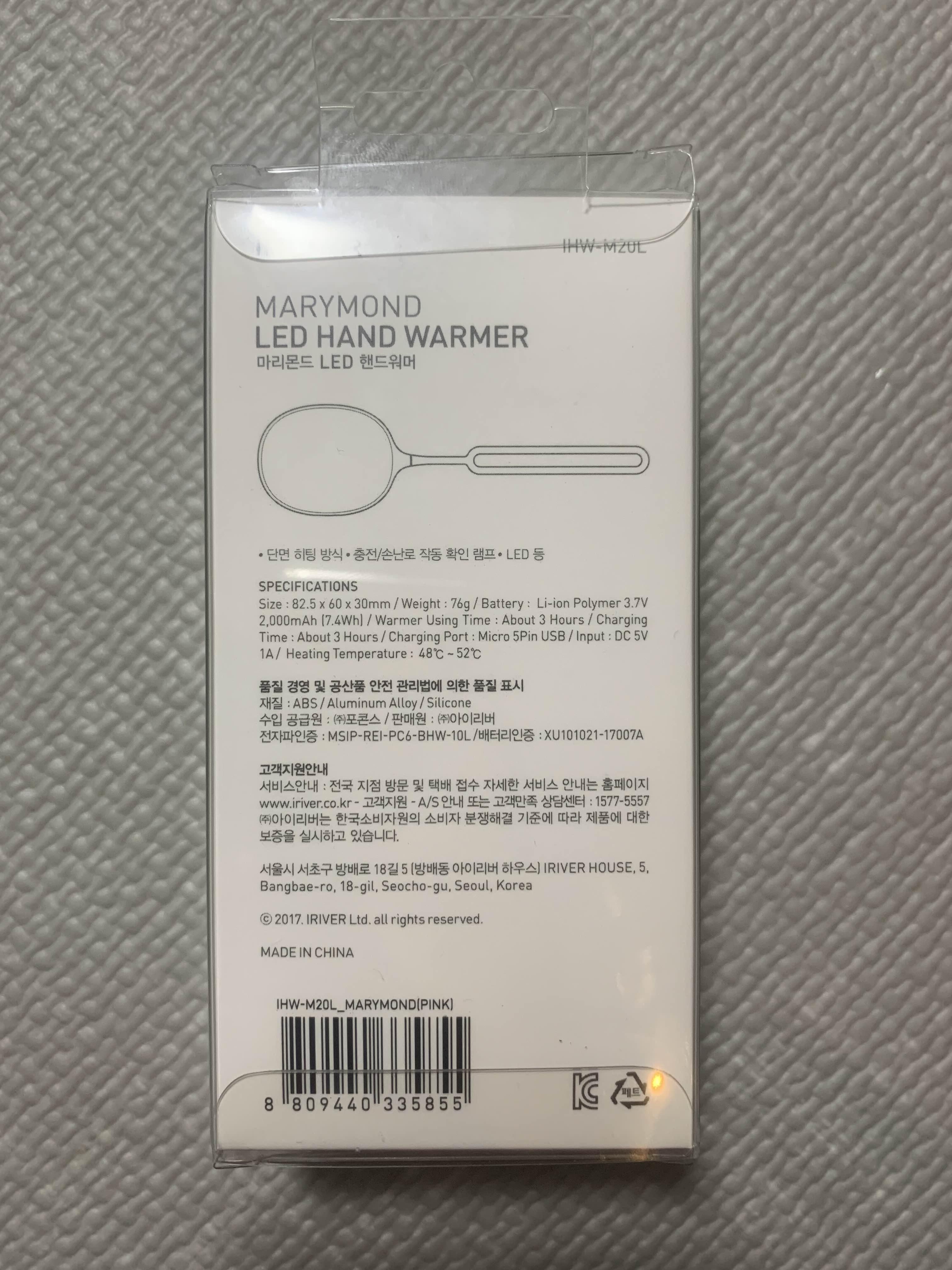 아이리버 마리몬드 LED 충전식 손난로